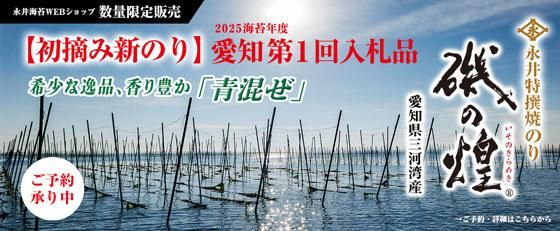 今期もこの時期の愛知県三河湾産ならではの香り豊かな希少な逸品、「青混ぜのり」を数量限定で発売します!現在ご予約承り中です。→詳細はこちら
